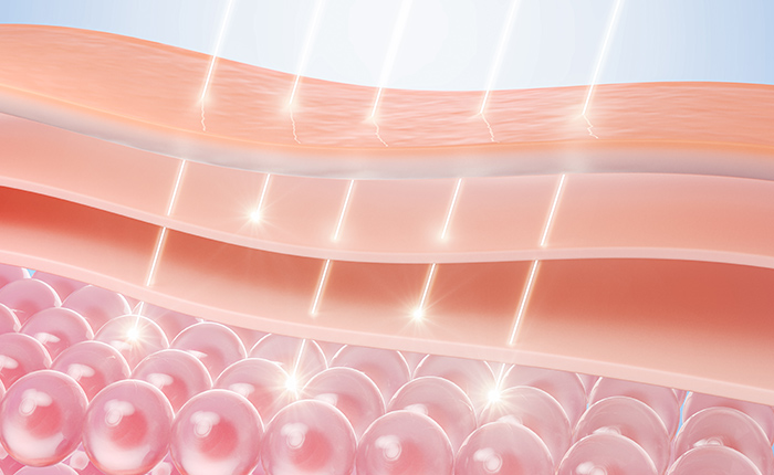 진피층의 탄력 섬유를 자극해 콜라겐 생성을 유도하고,